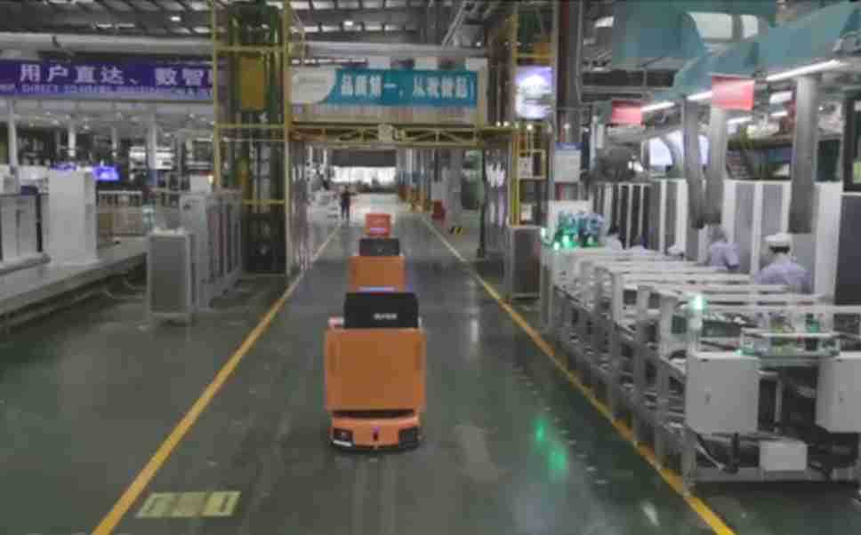 为车载冰箱物流配送打造的智能解决方案,,,包含产中物流通过潜伏举升AMR搬运至线边,,产后成品物流智能仓储,,,流程包含产中物流智能齐套入库,,,,线边安灯叫料AMR智能配送至线边,,,成品入库、、、、出库,,通过无人堆高车机器人,,,,智能仓储管理替代人工作业管理,,,实现更高存储、、、、更高效率、、、、更具柔性化的解决方案。。。